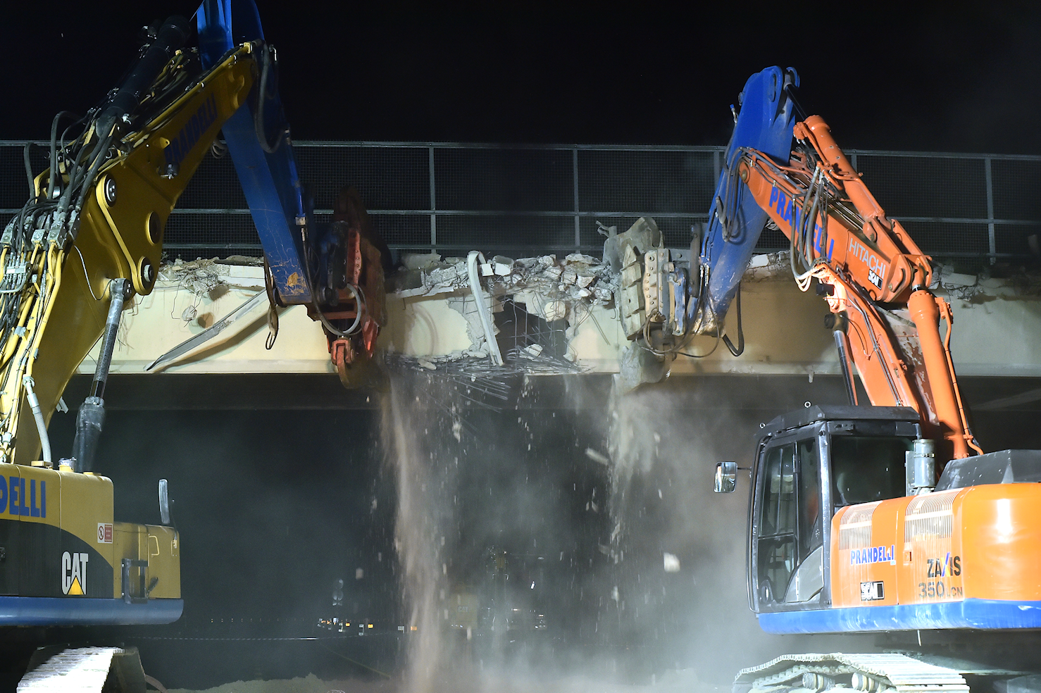 Abbattuto il vecchio cavalcavia sulla strada provinciale 65 "Ungarica"