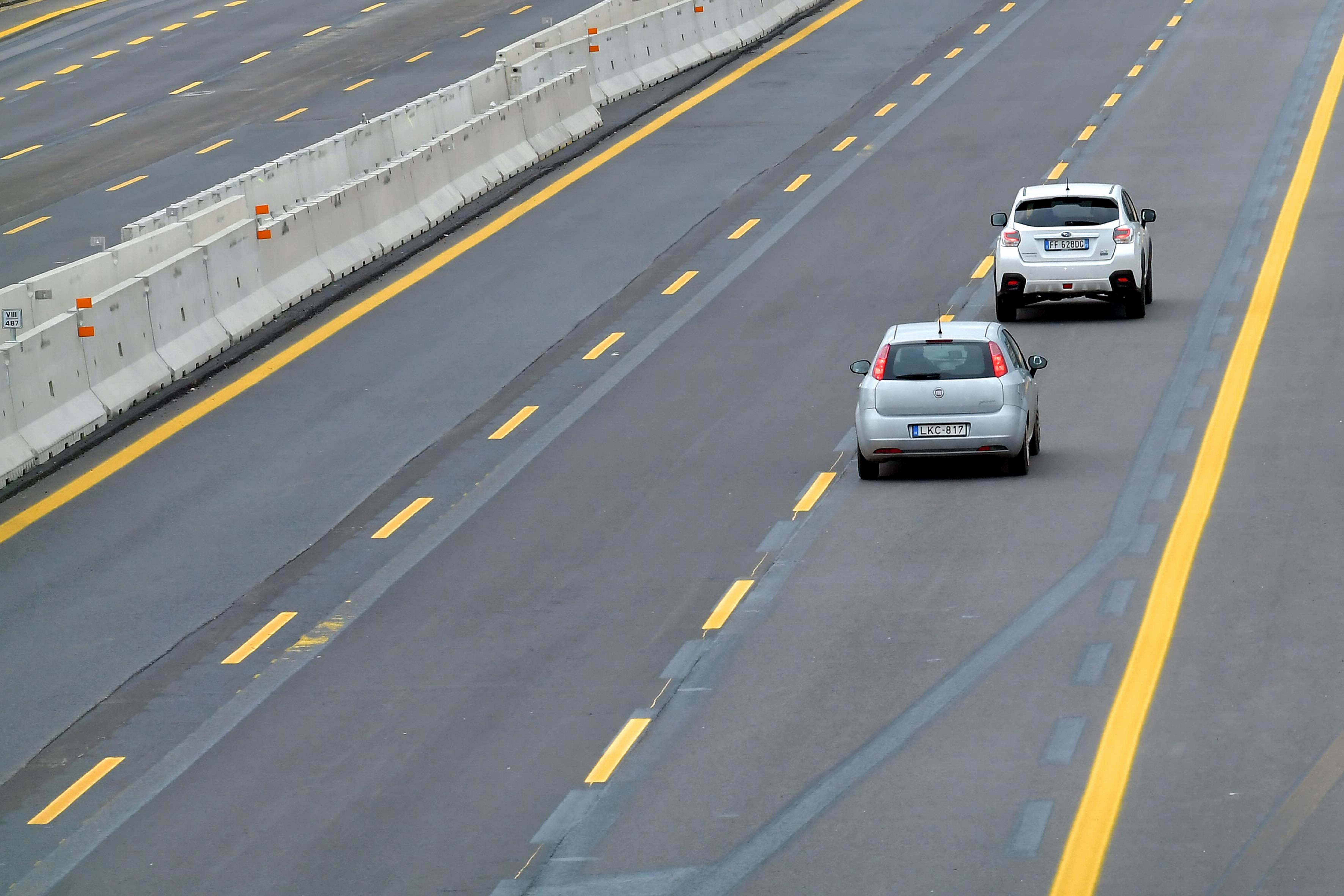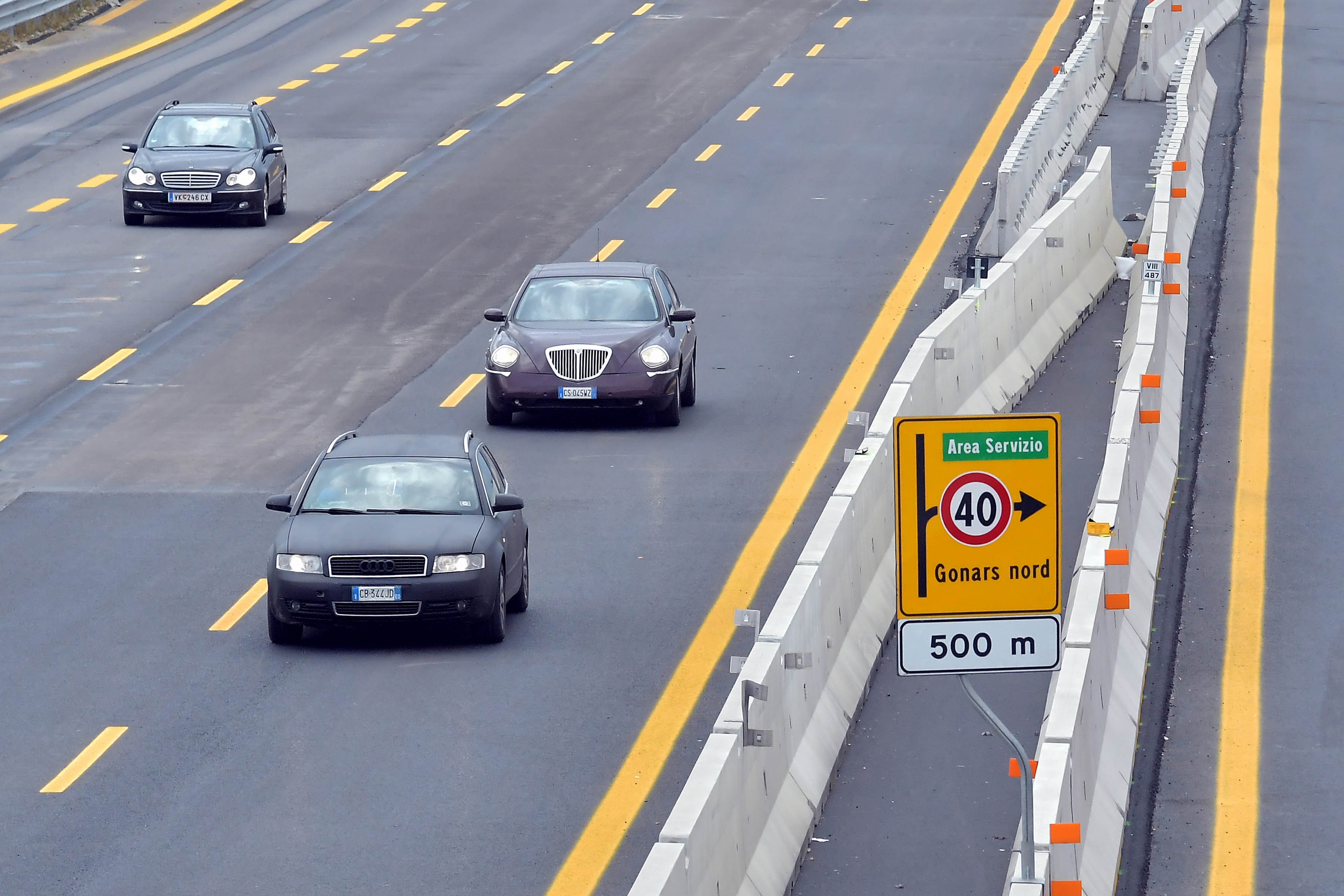 Tratti a tre corsie: limite massimo di 110 chilometri all'ora per i veicoli con peso fino a 7,5 tonnellate; limite massimo di 80 chilometri all'ora per i veicoli superiori alle 7,5 tonnellate; eliminato il divieto di sorpasso per i mezzi pesanti.
