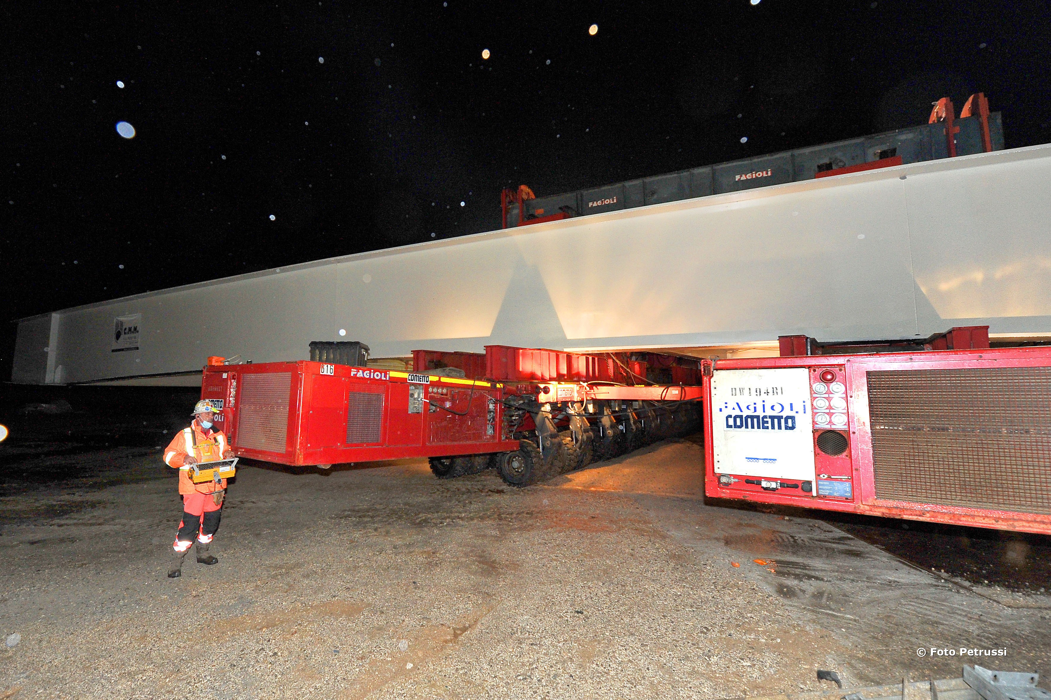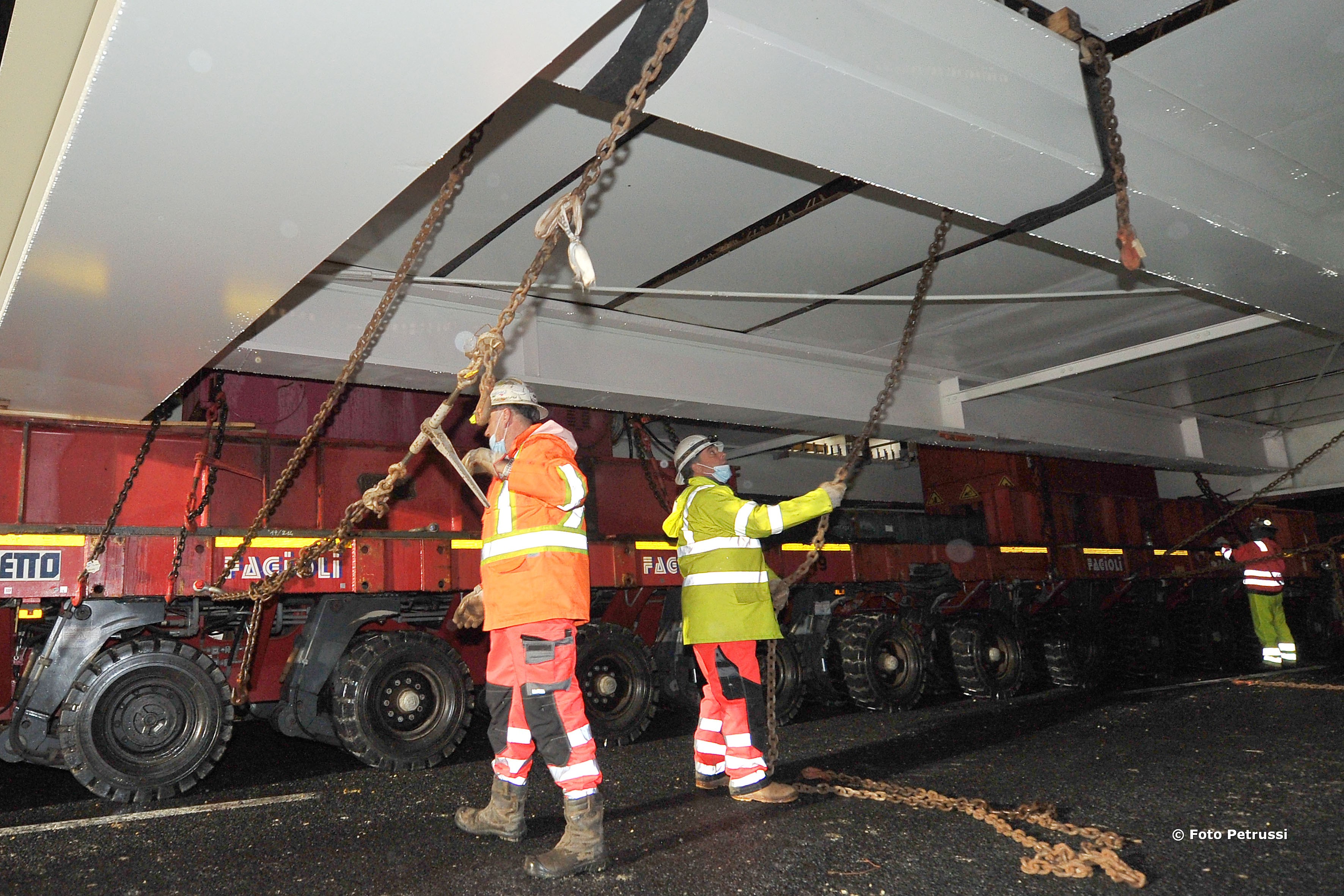Due ore, invece, per sollevarla da terra grazie ai martinetti idraulici e agganciarla alle pile. Con un’operazione millimetrica telecomandata a distanza con un joystick. La campata verrà appoggiata alle pile del ponte e nei giorni successivi verranno costruite le due campate a riva. Una tecnica inedita, studiata per garantire maggiore sicurezza nelle fasi del varo.